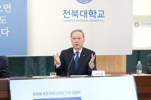 [투데이안] 양오봉 전북대학교 총장은 14일 취임 2주년을 맞아 그동안의 소회와 성과, 비전 등을 밝혔다.그는 2년동안 제1기 글로컬대학30 사업 선정을 비롯해 정부 재정지원사업만도 8천억 원이 넘었다. 대학 발전기금도 52억 원을 유치하는 성과를 거둬들였다.다음은 1문 1답이다./ 편집자 주◆전북대 제19대 총장에 취임한 지 2년이 지났다. 소회는?"대학의 미래 비전을 위해 쉼 없이 달려온 시간이었다. 거리로 환산했더니 730일 동안 24만Km를 달렸다. 하루 평균 300km 이상을 달리고 또 달렸다. 지구 여섯 바퀴를 돈 셈이다