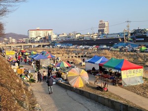 고단함이 아닌 재밌는 남부시장을 그리다[투데이안] 날이 새기 시작하면 서둘러 나설 채비를 한다. 조금은 두툼한 옷을 입고 장바구니 캐리어를 챙겨 출발한다. 막 해가 뜰 무렵 도착하였음에도 이미 장이 서고 사람들로 북적였다. 남부시장 천변에는 새벽부터 동틀 무렵까지 도깨비시장이 열렸다가 사라진다. 직접 농사를 짓거나 산지에서 바로 가져온 신선한 농·수산물을 저렴한 가격에 살 수 있어 식당을 운영하는 사람들이나 현지인들이 많이 찾는 곳이다. 입소문이 나면서 전통 재래시장의 정겨움을 느껴보고 싶어 멀리서 찾아오는 사람들도