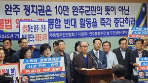 [투데이안] 완주·전주 행정통합을 지지해온 ‘완주전주 통합 2036 하계올림픽추진위원회’가 최근 완주군과 군의회의 통합 반대 행보를 “사실 왜곡에 기반한 정치적 행위”라며 강하게 비판하고 나섰다.추진위는 8월 6일 김기대 대표 등은 전북특별자치도의회 브리핑룸에서 기자회견을 갖고 “완주군은 전주시와 공동 생활권을 공유하면서도 행정구역 이원화로 비효율과 주민 불편을 초래해 왔다”며 “완주와 전주의 통합은 전북 발전의 초석이자 미래세대를 위한 대승적 결단”이라고 강조했다.추진위는 이날 “2009년, 2013년에도 통합 논의가 있었지만 ‘
