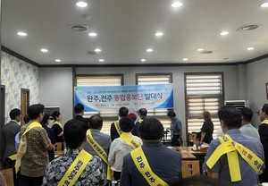 -350여 명 참여… 105개 상생발전방안 대면 홍보 본격화[투데이안] (사)완주전주역사복원추진위원회(공동대표 나유인, 마완식)는 1일 오후 완주군 용진읍에서 ‘완주전주 통합홍보단 발대식’을 갖고, 완주·전주 통합의 필요성과 당위성, 그리고 완주 지역에 집중 투입될 105개 상생발전방안에 대한 본격적인 대면 홍보 활동을 시작했다.이날 발대식에는 위원회 관계자를 비롯해 완주군 13개 읍·면 주민과 완주 거주 청년 등 350여 명이 참석했다.참석자들은 완주와 전주의 역사적 연결성과 행정통합의 필요성에 공감하며 뜻을 함께했다.출범한 통합