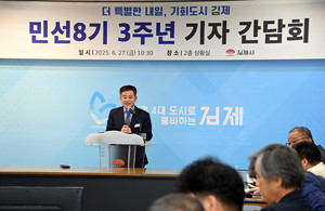 -정성주 김제시장, 민선 8기 취임 3주년[투데이안] ‘전북권 4대 도시로 웅비하는 김제’를 기치로 미래 100년의 초석을 다지기 위해 숨 가쁘게 달려온 김제시(시장 정성주)가 지난 3년간 변화의 씨앗을 뿌렸고, 그 씨앗은 깊은 뿌리를 내리며 싹을 틔워 이제 새로운 기회의 꽃을 피우고 있다.처음 가졌던 꿈과 목표들은 현실로 다가오고 있다.김제시의 한 걸음 한 걸음은 전북의 새로운 길이 되고 있다.민선 8기 3주년을 맞아 김제시가 거둔 주요 성과와 미래 비전을 짚어본다.김제시는 역대 최초로 3년 연속 국가예산 1조원을 돌파하는 성과를