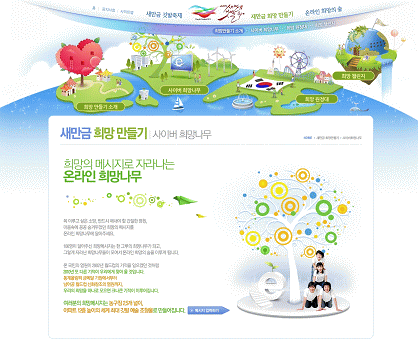 100명이 달아준 희망메시지는 한 그루의 희망나무가 되고 이렇게 자라난 희망나무들이 모여 온라인 상에 희망의 숲을 이루는 방식이다.