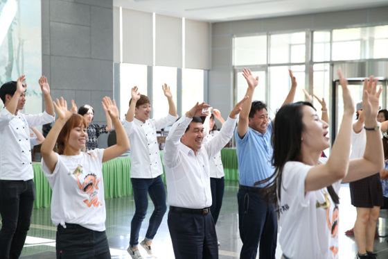 본 행사전 주민, 우석대 외식산업 조리학과 학생과 교수, 공무원이 함께 와푸댄스 플래시몹 참여해 축제분위기를 한층 고조시켰다.
