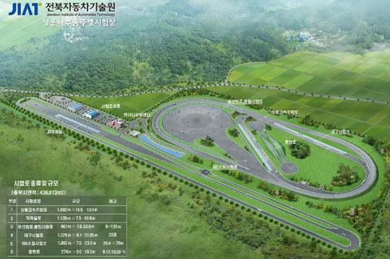 (재)전북자동차기술원은 군산시 옥구읍 43만㎡의 부지에 상용차부품 실증시험이 가능한 다양한 시험로와 엔지니어링동 등이 조성되는 자동차 주행시험장이 지난 5월 1일 착공식을 갖고 오는 2018년 3월 완공된다.