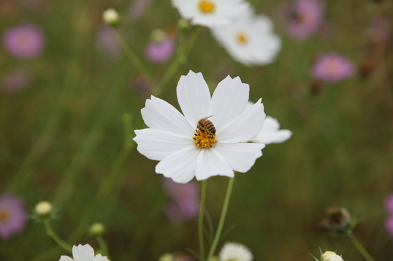 향기를 쫓아 열심히 꿀을 따는 꿀벌의 몸짓도 경쾌하다. 여기보고 저기를 봐도 코스모스로 가득한 이곳에 있자니, 진짜 가을이 왔음이 문득 실감난다.