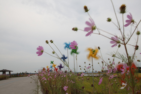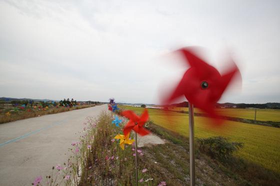 여기에 길가를 따라 촘촘하게 설치돼 있는 바람개비 또한 아름다운 장면은 만들어준다.