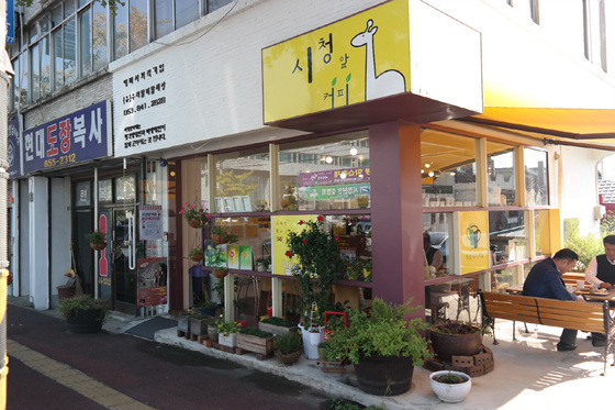 커피숍에 들어오기 전까지 이곳은 세월이 묻어나는 가게들이 자리를 메우는 오래된 관공서 앞 거리쯤으로 생각됐다. 특색 없고 오래된 이 거리는 커피숍이 자리 잡으면서 생기를 찾아갔다.