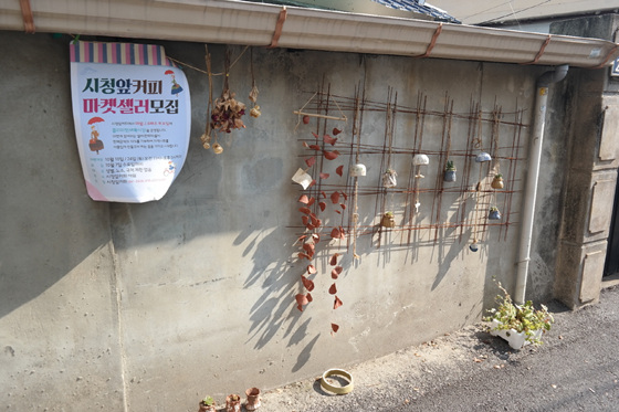 김 대표는 주민들의 양해를 구하고 골목을 단장하고 있다. 시청 앞 커피 옆 작은 골목은 바람이 불면 종이 뎅~뎅~ 맑은 소리를 내고, 앙증맞은 꽃 화분과 액자와 조형물 등이 곳곳에 걸리며 사람들을 반긴다.