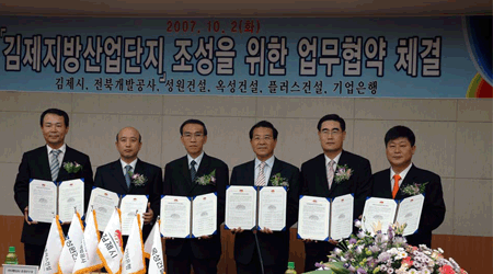 산업단지조성에 경험이 풍부한 전북개발 공사, 중소기업은행, 향토기업들이 업무협약을 체결했습니다. 100만평 지방산업단지 조성사업은 1,800억원의 사업비를 들여 2012년에 완료할 예정입니다. 주요 유치업종으로는 농기계산업, 기계장비, 자동차·전자부품, 통신장비 등입니다.