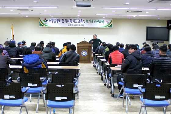 이번 소형 중장비 면허취득과정에 선정된 농업인들은 제1기 교육생은 3월 7일과 8일, 제2기는 3월 8일과 9일 전문학원에서 교육을 받고 교육비의 50%를 지원 받는다.