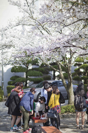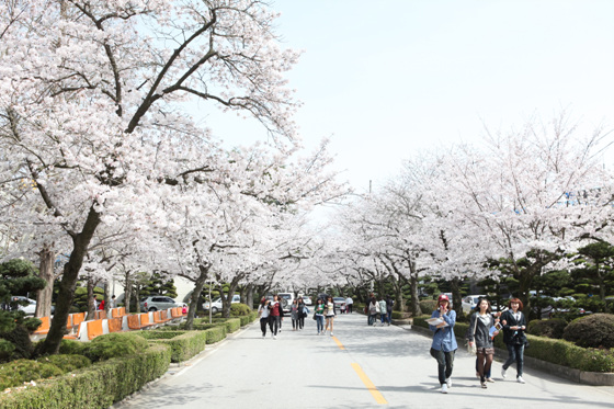 봉황각 앞 벚꽃 터널과 캠퍼스 곳곳에 펼쳐진 벚꽃 물결은 가히 아름답다. 큰 나무 아래로 보랏빛 꽃 잔디는 색깔과 향기로 사람의 시선과 발길을 붙잡는다.