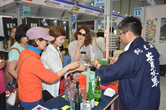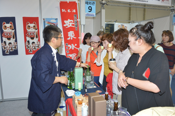 7일 순창전통고추장민속마을 일원에서 열리는 2016순창세계소스박람회 해외기업관에서 1860년 아오모리현 서해안의 유일한 오자키 양조장에서 일본 대표 전통주인 안도스이군을 시음하고 있다.