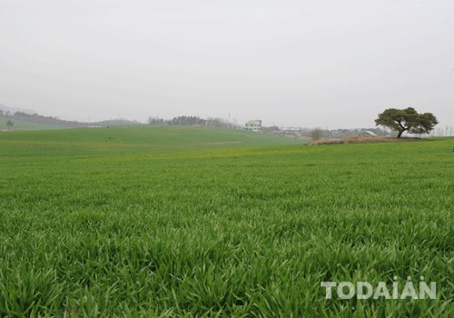 봄빛이 초록되어 30여만평의 청보리밭을 내리쬔다.