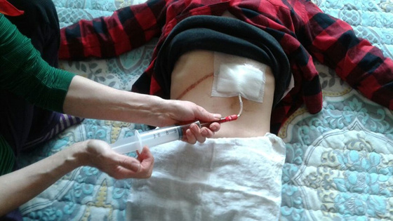 일상생활은 갈수록 어려워졌고 음식물을 전혀 섭취할 수 없어 배에 호스를 연결해 링거액을 맞으며 식사를 대신하고 있으나 거동까지 불편해진 상태라 홀로 병마와 싸우기에는 너무 버겁기만 하다.