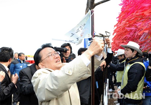 개식사에서 이연택 새범위 이사장은 "새만금이 생명의 바람에 펄럭이는 깃발에 온 국민의 희망과 염원을 담아 발전할 수 있기"를 기원했다.