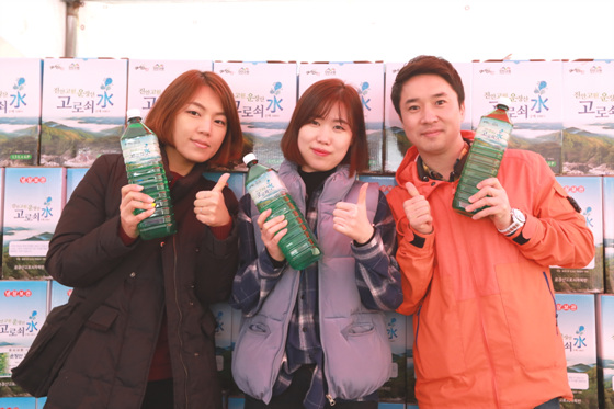 11일 오전 고로쇠축제를 찾은 주민과 관광객이 "진안고원 고로쇠 최고야!"를 외치고 있다. 축제는 12일까지 열린다.