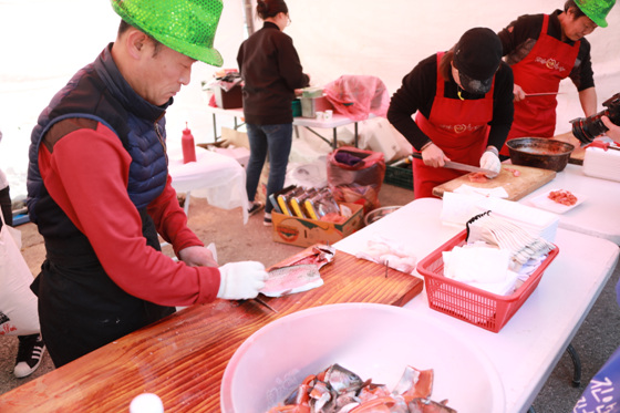 잡은 송어는 현장에서 바로 손질해 회나 매운탕으로 먹을 수 있도록 준비돼 관광객들에게 큰 인기를 끌었다.