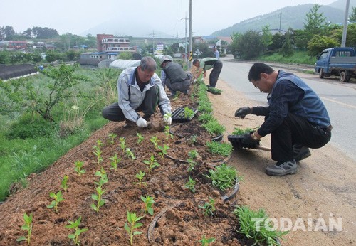 지난 4월 청사 둘레길과 도로변에 송엽국과 꽃잔디 2,000여주를 심은 것을 시작으로 면사무소 진입로 화단에 메리골드, 맨드라미, 사루비아 꽃 8,000여주를 심는 등 활기차게 추진되고 있다.