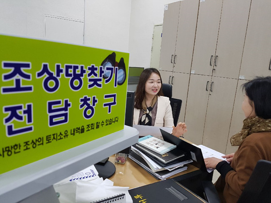 ‘조상 땅 찾기’는 조상 명의의 토지소유 현황을 상속인에게 토지소재를 알려줌으로써 시민들의 재산권행사에 도움을 주고, 재산권을 보호하도록 제공하는 서비스다.