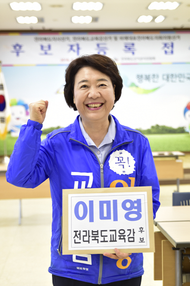 이미영전라북도교육감 후보는 24일 오전 9시 제18대 전라북도교육감선거 후보등록을 마치고, “유,초,중,고를 잘 아는 학교교육전문가인 제가 전북교육 일으켜 세우고 전북의 아이들에게 반드시 행복한 미래를 주기 위해“ 교육감에 출마했다고 소감을 밝혔다.