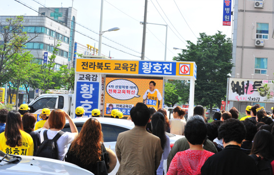 황호진 전북교육감(노무현 정부 교육인적자원부 교원정책과장) 후보는 31일 전주시 평화동에서 선거출정식을 갖고 "전북교육의 미래도약을 위해 자신을 선택해 달라"며 지지를 호소했다.