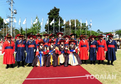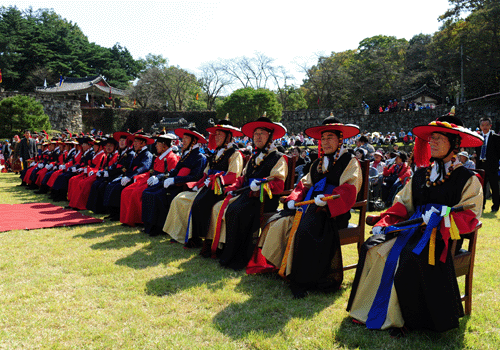 제37회 고창모양성제가 있는 16일에는 고창읍성(사적 제145호) 축성당시 참여했던 지역 단체장들이 참석해 지역 고을기를 게양하는 ‘축성참여 고을기 게양식’을 거행했다.