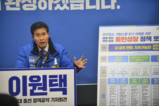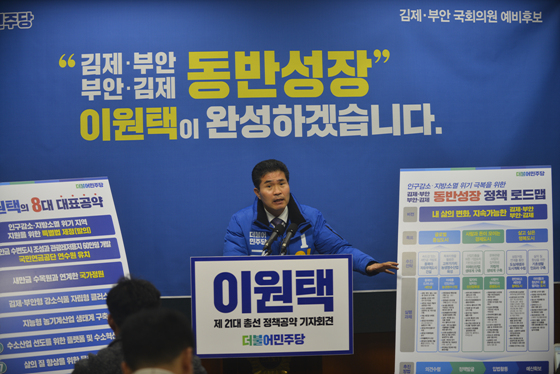 이원택 예비후보는 31일 전북도의회 브리핑룸에서 정책·공약발표 기자회견을 갖고 ‘내 삶의 변화, 지속가능한 김제·부안’ 비전을 제시했다.