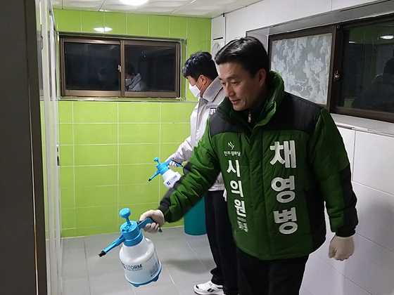 [투데이안] 채영병 전주시의원(효자4·5동, 민생당) 예비후보는 지난 4일 코로나19의 확산 방지를 위해 효자동 일대에서 방역활동을 펼쳤다.