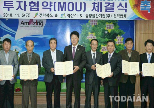 국내 최대 농기계 종합메이커 동양물산기업㈜ 협력업체 9개사가 익산시로 이전하기로 하고 투자협약을 맺었다.