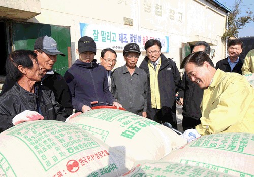 지난4일 홍낙표 무주군수는 수확기 쌀 수급안정대책종합상황실에서 벼 작황을 점검하고 농민들이 좋은 등급을 받을 수 있도록 매입대상 농가에 벼말리기 등 현장 지도를 강화하라고 지시 한 후, 안성면 상산고 매입장을 방문 수매에 참가한 농민들을 격려했다.