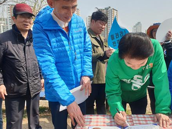 행사를 주최한 전북환경운동 연합은 “전주천 국가하천 구간은 명실상부 천년고도의 지리지형을 대표할 수 있는 공간으로 수량도 많고 하천 폭도 풍부한 곳이어서 자연성을 회복한다면 시민의 휴식공간으로도 크게 기여할 수 있는 곳”이라며 국회의원 후보자들의 적극적인 역할을 요청했다.