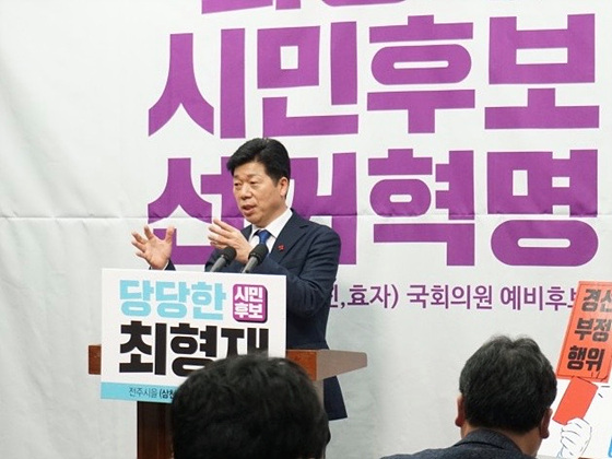 [투데이안] 최형재 전주시을 국회의원 시민후보는 22일, 명절선물을 돌린 혐의로 선관위로부터 고발되어 압수수색 등 검찰 조사를 받고 있는 이상직 후보의 ‘자진 사퇴’와 민주당의 ‘공천 철회’를 주장했다.