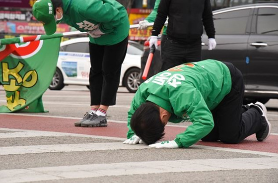 특히 어제(6일)는 오전·점심·저녁 각각 2시간의 유세동안 약 500여번이 넘는 큰절을 했다.
