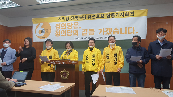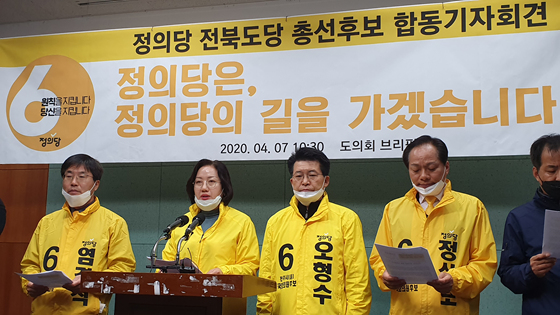 7일 정의당 전북도당은 전북도의회 브리핑룸에서 기자회견을 갖고 "거대양당의 비례위성 정당으로의 '의원 꿔주기' 때문에 공보물 인쇄를 시작해야 하는 시점까지 정의당은 자당의 기호를 알 수 없었다"며 "선거운동과정에서 유권자들에게 기호를 알리는 것은 매우 중요하지만 불리하게 선거를 치르게 됐다"고 말했다.