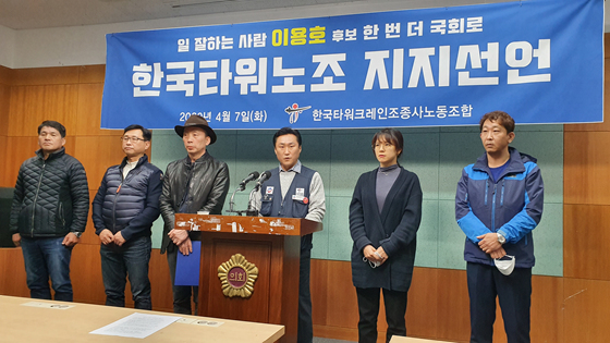 [투데이안] 한국노총 연합노련 한국타워크레인 조종사 노동조합이 무소속 이용호 남원.임실.순창 국회의원 후보를 공식 지지했다.