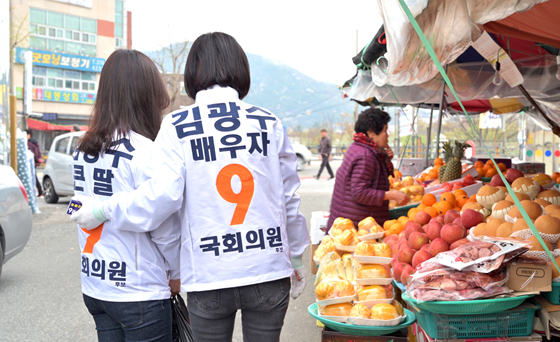 현재 직장생활을 하고 있는 김 후보의 배우자 한화정씨와 큰 딸이자 워킹맘인 김별(31)양은 회사를 잠시 휴직하고 하루 종일 선거운동 현장에서 강행군을 펼치고 있다.