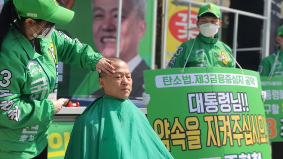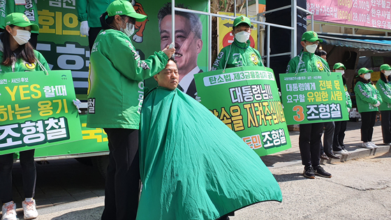이날 조 후보는 삭발식을 통해 “문재인 대통령은 ‘전북의 친구’를 자임했지만, 전북탄소법, 금융도시 지정, 공공의대 설립, 군산형 일자리 등 제대로 진행된 것이 하나도 없다”고 주장했다.