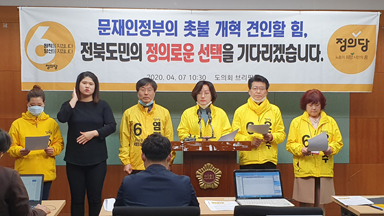 정의당 전북도당은 "정의당이 의석 몇 석을 얻을지, 교섭단체를 구성할 수 있을지에 따라 21대 국회의 모습이 달라진다"면서 "대한민국과 전라북도의 미래가 여기에 달려 있다"고 호소했다.
