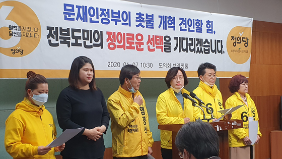 정의당 전북도당은 14일 전북도의회에서 기자회견을 열고 “전북에 4명의 지역후보가 출마해 정당지지 득표 20%이상과 1명 이상의 지역후보의 당선을 위해 자정까지 최선을 다하겠다”며 이같이 밝혔다.
