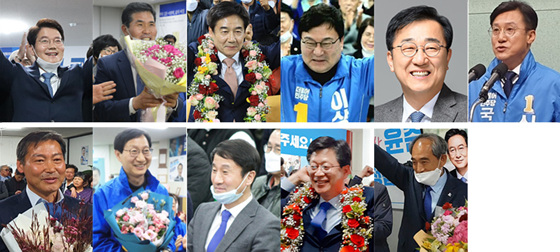▶전주갑 김윤덕(민·53·남) ▶전주을 이상직(민·57·남) ▶전주병 김성주(민·56·남) ▶군산시 신영대(민·52·남) ▶익산갑 김수흥(민·58·남) ▶익산을 한병도(민·52·남) ▶정읍·고창 윤준병(민·59·남) ▶남원·임실·순창 이용호(무·60·남) ▶김제·부안 이원택(민·50·남) ▶완주·진안·무주·장수 안호영(민·54·남) ▶진안군수 전춘성(민.59.남)