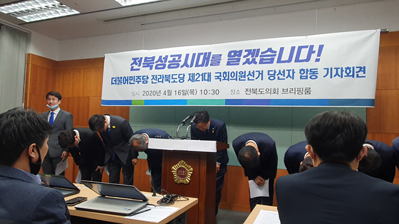 16일 더불어민주당 제21대 국회의원 선거 당선자들은 전북도의회 브리핑룸에서 합동 기자회견을 갖고 "이번 국회의원 선거에서 전북도민들의 선택은 국가재난 극복과 전북의 성공, 문재인 정부의 성공을 바라는 열망이라고 생각한다"며 이같이 밝혔다.