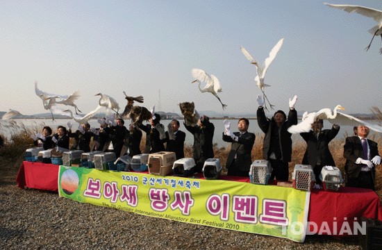 보호가 필요한 아픈새를 방사하는 행사에서는 지난 1년간 철새조망대를 통해 구조.구난되어 치료를 받아오던 철새들이 건강을 되찾고 자연의 품으로 돌아갔다.