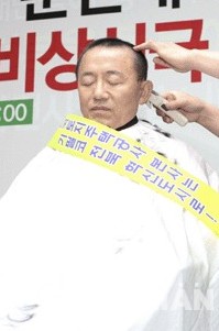 LH본사유치 무산 가능성이 높아짐에 따라 6일 삭발이라는 강수를 들고 이명박 대통령에게 결연한 의지를 보였다.