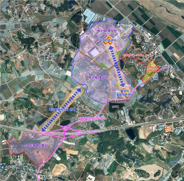 김제시는 새로운 미래 성장동력 확보를 위해 현재 29개 특장차 기업이 입주를 완료하고 활발한 생산활동을 펼치고 있는 백구특장차전문단와 자기인증센터 그리고 새롭게 조성중인 10만평 규모의 제2특장차 전문단지를 중심으로 대한민국의 특장차 산업을 선도해 나갈 수 있는 ‘특장차 클러스터 조성을 야심차게 추진해 나가고 있다.
