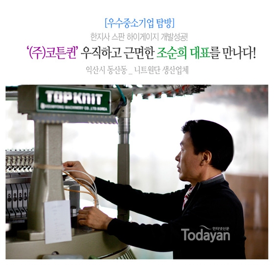 현재 ‘㈜코튼퀸’에는 조 대표와 13명의 직원들이 품질향상과 원단개발, 개발제품에 대한 상품화를 진행하기 위해 땀 흘리며 열심히 일하고 있다.
