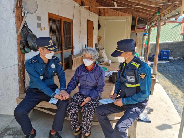 특히 탄력 순찰하면서 홀로 거주하는 독거노인 대상으로 문안인사와 코로나19 방역수칙 안내 등으로 지역주민들에게 감동을 실현하는 맞춤형 치안활동을 전개하고 있다.