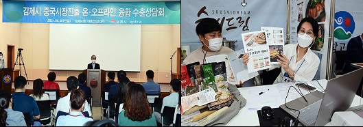 코로나19로 대면 판촉이 어려운 상황에서 김제시는 지난 6월30일 김제시청 대회의실에서 공격적 마케팅 시도로‘중국시장 진출 온오프라인 융합 수출전시상담회’를 개최한다.