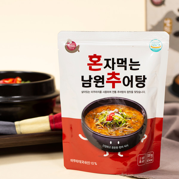 미꾸리로 만든 400g 10팩 선물세트 7만원, 400g 5팩 선물세트는 3만5천원이다. 미꾸리 추어탕 협동조합이 급속도로 증가하는 1인 가구를 위해 출시한 혼자 먹는 남원추어탕 ‘혼추’는 그 중에서 단연 인기품목.
