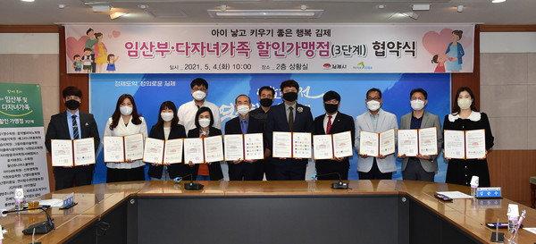 또한,“출생만 하면 김제시가 키워준다”는 출생 사회적 책임과 우대문화 확산을 위해 임산부‧다자녀가족 할인가맹점”협약을 75개소로 대폭 확대했으며, 다자녀 인증앱 개발, 다자녀가정-1社 행복드림 매칭사업 추진, 출산가정 축복 꾸러미 전달, 출생축하 생애 첫 도장 지원, 첫돌맞이 아기달력 지원 등 인구유입, 출산친화 사회 분위기를 확산시키고 있다.
