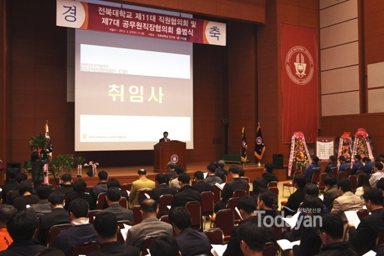 전북대 공직협은 27일 오전 11시 진수당 가인홀에서 서거석 총장을 비롯한 내외빈 인사, 직원 등이 참석한 가운데 제7대 공무원직장협의회 및 직원협의회 출범식 및 신임 회장 취임식을 가졌다.